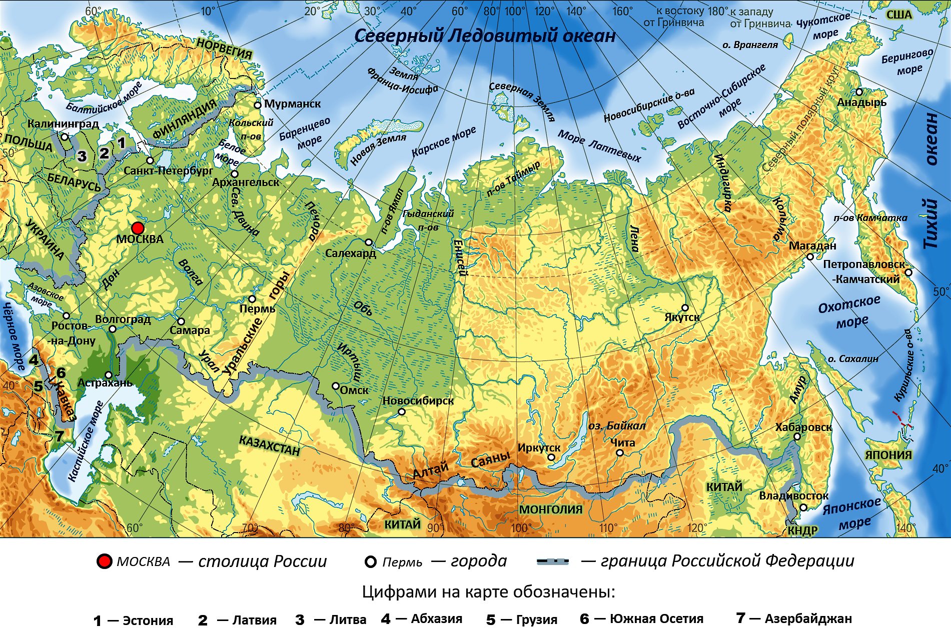 Географическая карта России с границами
